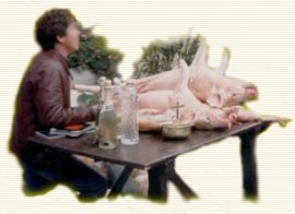 Cuando yo era pequeño siempre había en la Rifa de Animas , naturalmente para subastarlo, rabos de marrano, barrigas de tocino y trozos de espinazo